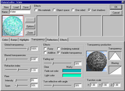 | En effet souvenez vous de vos vacances ou de vos rares visites à la piscine, vous aurez sans doute remarqué cet effet sur le fond: il s' agit des reflets lumineux ondoyants et chatoyants sur les objets immergés et le fond (gloub, gloub °°°). Il n' est visible qu' à faible profondeur. Pour cela Vue d' Esprit 2 dispose de deux armes très puissantes: